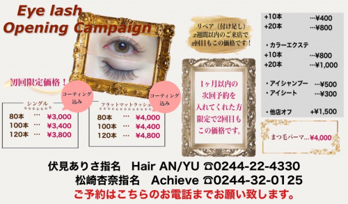 まつ毛エクステ・パーマ取扱いの御案内