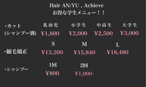 この度、アンユ・アチーヴの学生料金が改定となり、お得になりました!